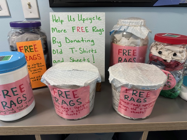 We donate containers of Re-Rags around Rhode Island to painters, mechanics, artists and more. Funded in part by a grant from the Rhode Island Foundation.